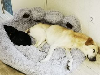 Benny ist angekommen, liebt es immernoch bei Wind und Wetter draußen zu sein. Liebt es aber auch, wenn die kaputten Knochen, nachdem seine Seele von dem sicherlich schweren Leben auf der Strasse geträumt hat, satt auf einem orthopädischen Bett vor der Heizung zu liegen mit Hundefreunden eng an ihn gekuschelt.