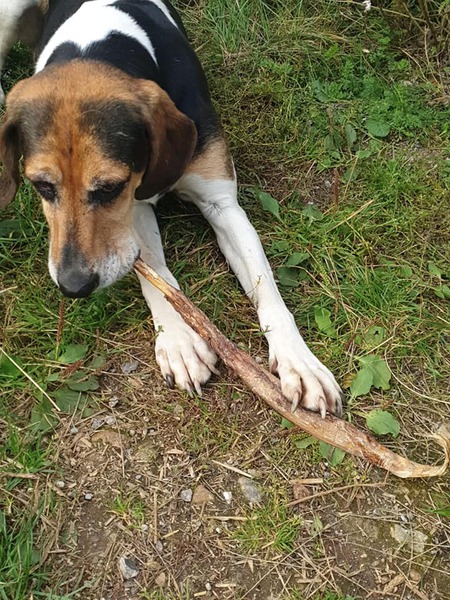 Nanni ist ein Jagdhund und auch ihr Jagdtrieb ist sehr stark ausgeprägt. Sie liebt Nasenarbeit in Form von Schweißspur, Fährenarbeit oder Futterschleppe.