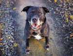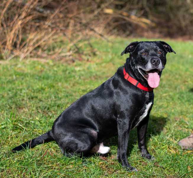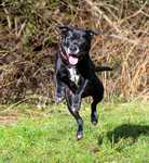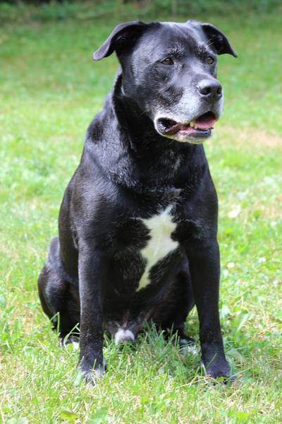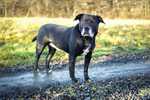 An der Leine geht er manierlich und wie man auf einem der Bilder sehen kann, hat er Power trotz pummelig.