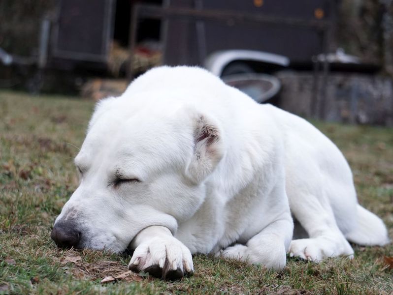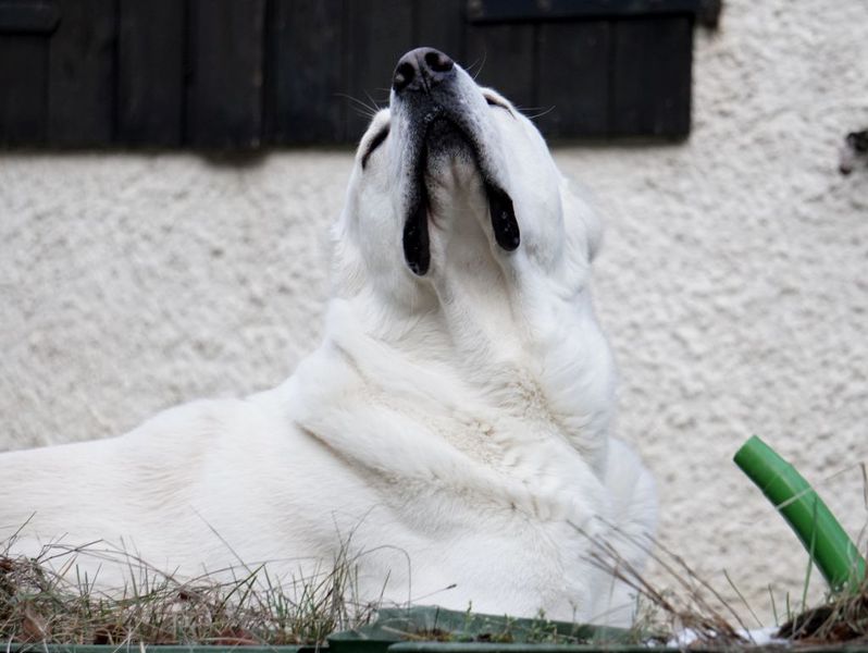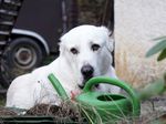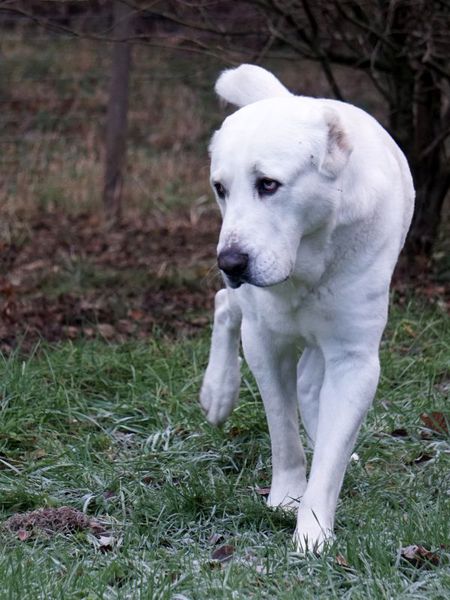 Nanuk ist ein Owtscharka. Der Hund ist wie ein Gemälde, ein absoluter Traum. Er ist zu Anfang misstrauisch, nachdem Herrchen vorgestellt hat aber sehr schnell freundlich und sucht Kontakt.