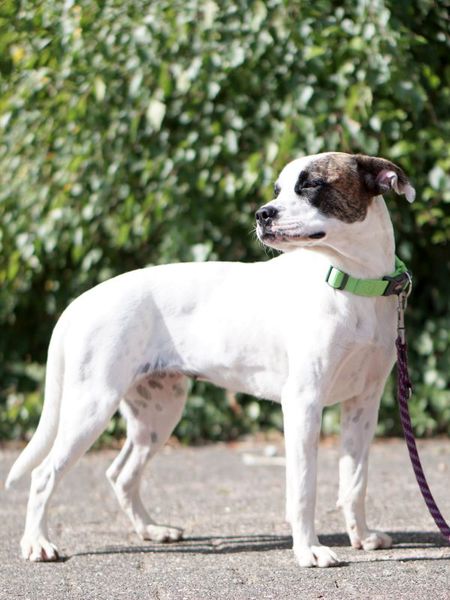 Sie ist sehr aufgeweckt, liebt es mit den anderen Hunden durch den Garten zu toben, lange Spaziergänge und kuscheln.