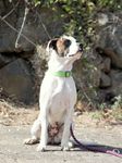 Er kann mit einem Zweithund stundenweise alleine bleiben, geht sehr gut an der Leine und kennt Sitz und Platz. Schmusen mit seinem Herrchen/Frauchen findet er klasse.